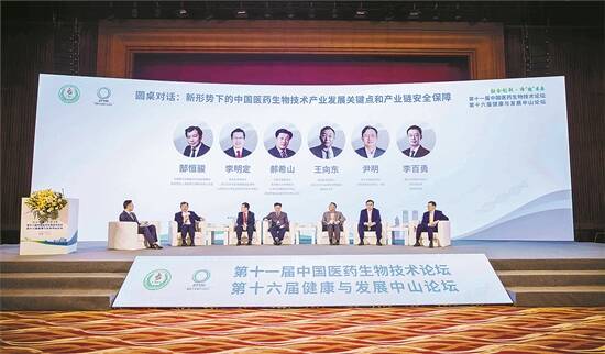在圆桌对话环节,中国工程院院士、天津医科大学原校长、天津市肿瘤研究所所长、国家肿瘤临床医学研究中心主任郝希山,欧洲科学院院士、复旦大学中山医院特聘教授、首席科学家王向东,欧洲科学院外籍院士、浙江大学求是讲席教授及博导、山西农业大学生命科学学院学术院长李明定,中山市委副秘书长、发改局局长尹明,中国医药生物技术协会副理事长、生物芯片上海国家工程研究中心主任郜恒骏,康方生物联合创始人、执行副总裁、首席科学官李百勇等行业专家和企业家齐聚一堂,围绕“新形势下中国医药生物技术产业发展关键点和产业链安全保障”主题进行了探讨,并就“‘黄金内湾’健康产业发展新机遇”等议题分享了精彩的观点与思考。