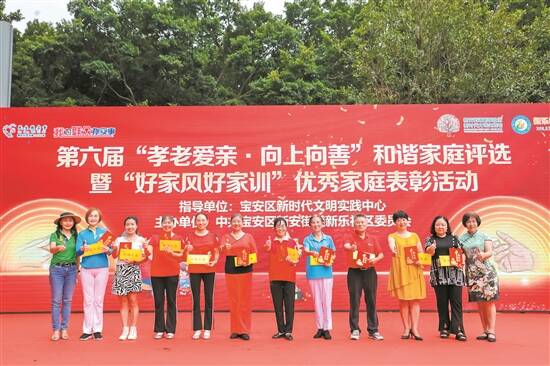 10月28日,宝安区新安街道新乐社区第六届“孝老爱亲·向上向善”和谐家庭评选暨“好家风好家训”优秀家庭表彰活动,在海岸悦府花园广场举行。现场,社区居民围坐,喝彩新乐和谐、优秀家庭,说“新乐事”,享乡味,看演出,和百岁老人欢聚一堂,一派其乐融融、欢乐祥和的场景。
