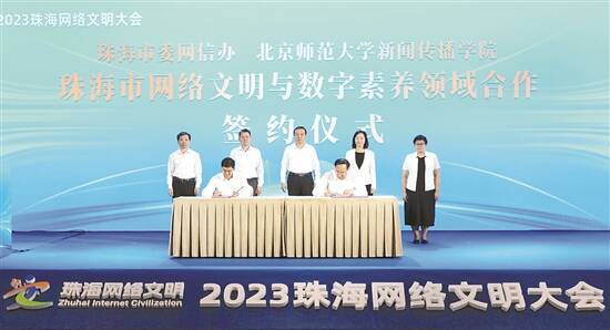 开幕会上,珠海市委网信办与北京师范大学新闻传播学院签署“珠海市网络文明与数字素养领域”合作协议。大会期间还举办了主题演讲、2023珠海市“五个一批”网络正能量培育活动成果展示、首届珠海网络评论挑战赛经验交流等一系列活动。