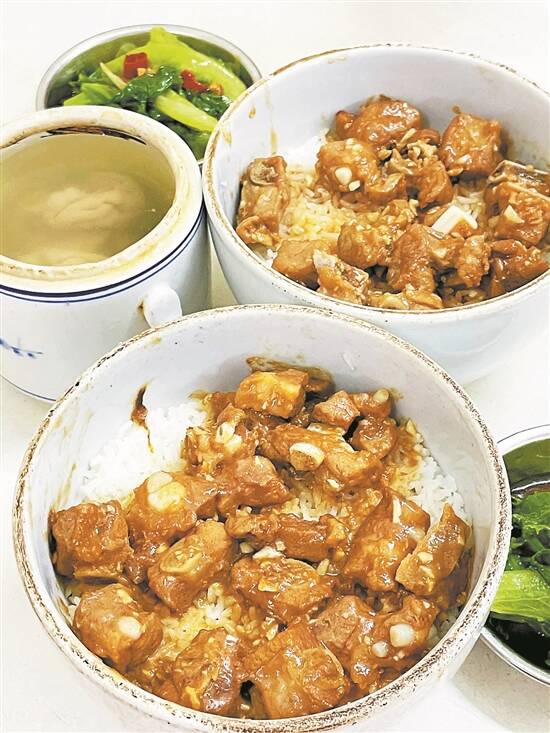 “外面的人来吃饭,别人问他‘去哪吃饭啊’,他就回答‘去旨亭街吃排骨饭’,后来我们就把招牌做成‘旨亭街排骨饭’了。”老板金先生介绍。据了解,“旨亭街排骨饭”原名是“隆香饮食店”,截至今年,已经开了33年。