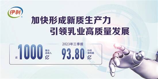 10月30日,伊利股份发布2023年三季报。报告期内,公司创新成果转化提速,上市多款健康新品收获市场积极反馈,公司营收、净利也再创历史新高,前三季度营业总收入达974.04亿元,直奔“千亿”大关,净利润更实现16.36%的增长,核心经营能力持续提升。