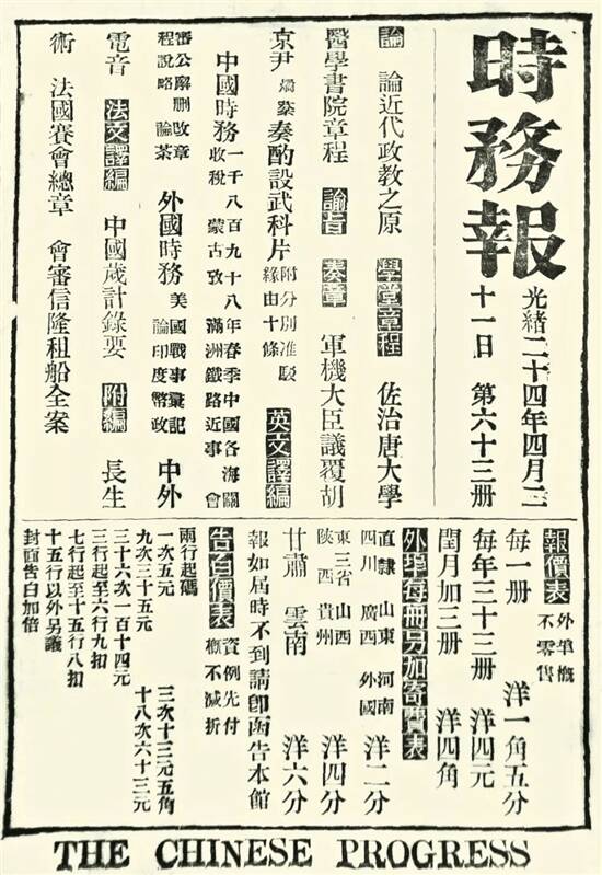 梁启超创办的《时务报》 资料图