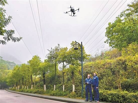 东莞供电局工作人员使用5G无人机对线路进行智能巡检 徐靖琳 摄