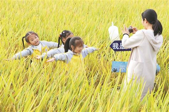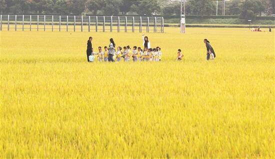 “几乎每年丰收的时候,我都带小孩子来这里游玩,了解农耕文化,体验丰收的快乐。”一位市民感慨地说。记者看到,收割以来,这片金黄的稻田就吸引许多家庭前来打卡。他们带着相机、手机,记录美好的时刻。孩子们在田埂上奔跑、嬉戏,与大自然亲密接触,体验着都市农田带来的乐趣。