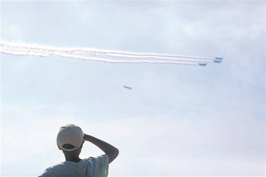 飞行表演队的精彩表演赢得观众阵阵叫好声 郑达 摄