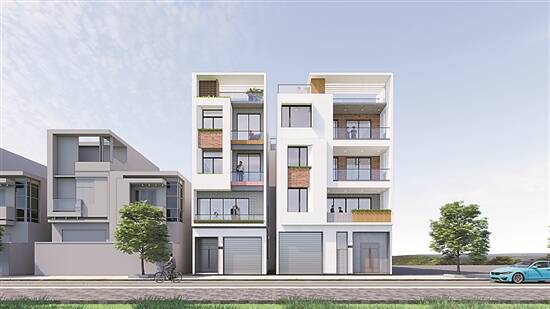 左70㎡、右110㎡组合式自建房的示意图