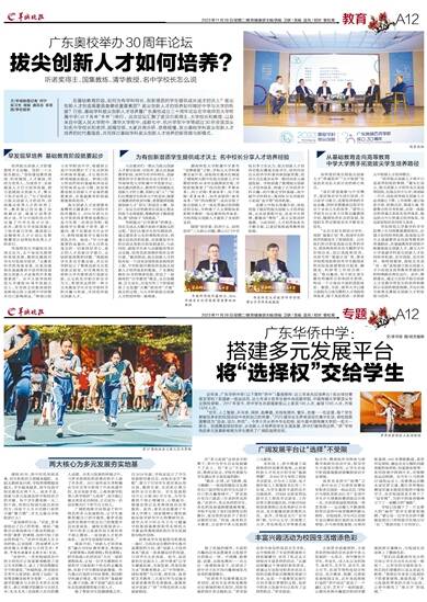 近年来,广东华侨中学(以下简称“侨中”)喜报频传:近三年来先后培养出1名台球世青赛亚军和7名国家一级运动员,近七年来6名学生被中央戏剧学院、中国传媒大学等顶尖专业院校录取。2017年至今,侨中学生共获国家级以上奖项146人次,省级1245人次,市级1328人次。