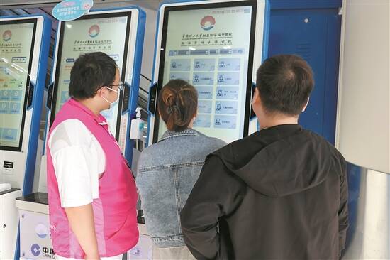珠海市妇幼保健院志愿者帮助患者使用自助机