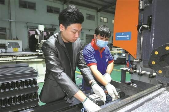 切割、打孔、胶条嵌装、玻璃安装……下午2时,在莲洲镇新富铝铁加工技术有限公司(以下简称“新富铝铁”)生产车间内,一切繁忙而有序。黄健聪如常逐一巡查着各个环节,“材料从进入生产线到最终定型需要多道工序,每一个细节都不容忽视”。