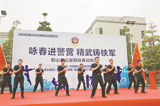 鹤山公安还以警察节、春节、儿童节、“七一”建党日为契机,将咏春拳术、舞狮、歌曲等文化元素融入公安党建队建和社会面宣传工作中,不仅促进当地警民文化的交融,树立了鹤山公安良好形象,还塑造了浓厚的警营功夫文化,进一步激发了队伍内生动力,使咏春精神的威力延伸到了“平安鹤山”建设中,实现“软文化”“硬着陆”。今年以来,鹤山公安常态化开展集中统一清查行动35次,接报街面犯罪警情同比下降17.6%,带动电信诈骗警情同比下降26.9%,群众安全感、满意度逐步上升。其中,咏春义警队携手构筑起鹤山基层社会治理的“铜墙铁壁”,共同守护一方平安,共计投入安保队员600余人次,配合参与社会面巡查90余次,反诈宣传30余场次,协助抓获违法犯罪嫌疑人一批,协助寻回走失小孩20人次,救助群众50余人次,擦亮了平安义警建设品牌,成为群防群治多元化发展当中的一张响亮的名片。