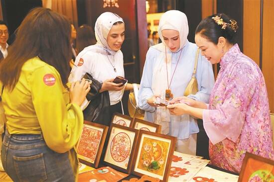 广东文化交流代表团深入海外市场“引客入粤”,“引客入湾区”。11月19日,由广东省人民政府新闻办公室、广东省文化和旅游厅、开罗中国文化中心主办的粤港澳大湾区世界级旅游目的地推介暨“魅力广东”视觉展在埃及开罗举行。会上除推介广东优质多元的文化旅游资源外,还进行了来自广东的人类非遗项目、国家级非遗项目的展示,图为人们在非遗展区了解广东剪纸。
