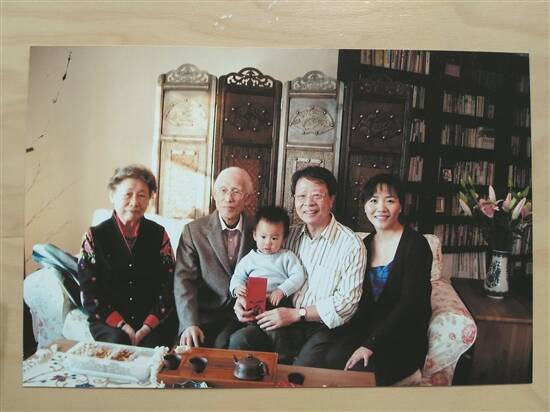 2007年11月,范我存(左一)、余光中(左二)夫妇与作者一家在深圳合影