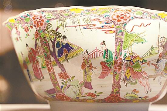 试想一下,在一场18世纪的欧洲贵族宴会上,一群金发碧眼的外国人围绕着一件来自中国的瓷器大碗欢呼雀跃。这件瓷器盛放着宴会美酒,宾客们面带微醺,争相品评。定睛一看,大碗周围刻画的竟是中国古典戏曲名著《西厢记》的人物故事图……