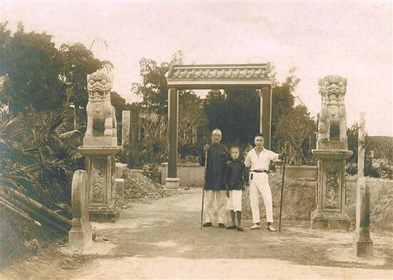 唐绍仪父子三人在共乐园直头石狮、门坊前 珠海高新区文化服务中心供图