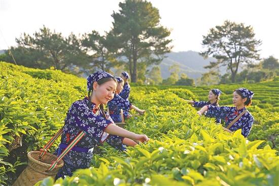 茶田叠叠,茶香四溢,茶韵悠长……在雁南飞旅游度假区茶田景区,无处不在的“茶”元素仿佛让时光慢了下来。“雁南飞茶田景区是依托2600多亩茶园作为主要景观来打造的,以‘公司+基地+农户’的形式发展农业,做到茶旅有机融合。”雁南飞旅游度假区相关负责人表示,雁南飞旅游度假区自1995年建设以来,一直采用“保护性开发”的方式,坚持生态发展、绿色优先,这一理念也体现在2013年开发“桥溪古韵”景区时。“为了保留‘古韵’,我们只拆除了一些破坏景观的现代建筑,对破败受损的建筑修旧如旧,同时只建了配套基础设施,连沿溪木栈道都是用百年老船木建造而成的。”雁南飞旅游度假区相关负责人说,如今整个旅游度假区的森林覆盖率达93%,每年接待游客约80万人次。整个景区按照“政府主导、企业运作、村民参与、共建共享、多方共赢”的开发思路,茶田景区村民有租金收入,“桥溪古韵”景区村民可获分红,同时直接带动附近村民就业300多人,取得了良好的社会效益和经济效益。