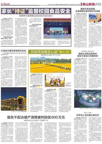 羊城晚报讯 记者吴泳、通讯员谢婷婷报道:春种一粒粟,秋收万颗子。2023年,佛山市高明区杨和镇启动公益稻田项目,将镇内约100亩连片撂荒农田复垦改造,对连片集中农田进行项目统一规划,成功盘活“沉睡”荒地,并在收割季迎来总产量超6万斤的大丰收,以“农旅+公益”融合创新形式,深入推进“百千万工程”。