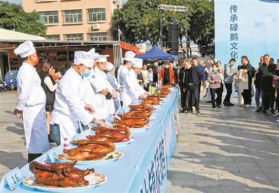 鹅产业作为沥林促进农民增收致富的重要内容,一方面,该镇不断推动沥林碌鹅技艺传承与创新。通过“党支部+企业+合作社+农户”模式,帮助沥林碌鹅技师寻找“传承人”;组织开展“烹饪技艺”进乡村、碌鹅文化传承进校园活动;结合现代健康理念改进烹饪工艺,推动建设碌鹅产业服务、文化展示、销售渠道、美食体验四大平台,努力打造引领鹅产业、鹅文化发展的新引擎。