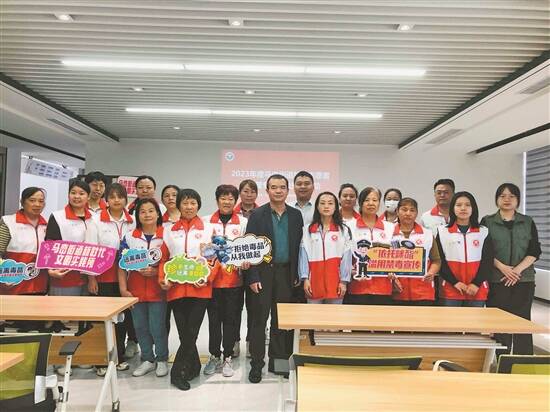 此外,马峦街道禁毒办联合街道新时代文明实践所举行了2023年度马峦街道禁毒志愿者表彰大会暨禁毒知识培训活动。表彰会上,马峦街道综治办负责人为优秀志愿者们颁发荣誉证书,并致以感谢和敬意。工作人员和志愿者们一同温习相关毒品种类和危害等内容,并重点科普了“依托咪酯”的外观、滥用方式、吸食后的状态以及危害等知识,并号召志愿者们把学到的相关禁毒知识以志愿服务的形式传播出去,让更多的人参与到禁毒斗争中来。据悉,禁毒宣传志愿队伍成立于2019年11月。截至目前,志愿者在册人数为123人,累计志愿服务时长达到了687小时。