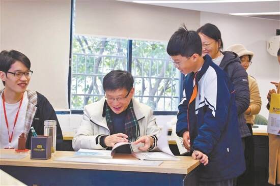 黄东坡(中)来广州与师生和家长分享数学学习心得