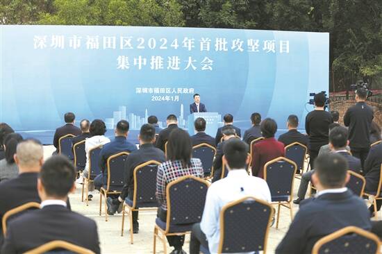 羊城晚报讯 记者郑明达报道:1月3日上午,福田区2024年首批攻坚项目集中推进活动在先进制造业联合总部基地项目现场举行,发布2024年首批攻坚项目23个、总投资1336亿元。以本次集中推进为契机,福田区吹响攻坚落实号角,掀起新一轮干事创业热潮,释放出跑起来、抢时间、争一流,奋力实现2024年“开门红、步步高”的强烈信号。