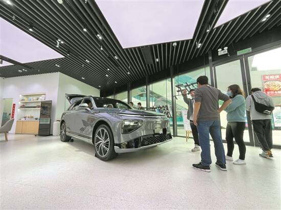 广州市白云区一华为自营店外展示的AITO问界汽车