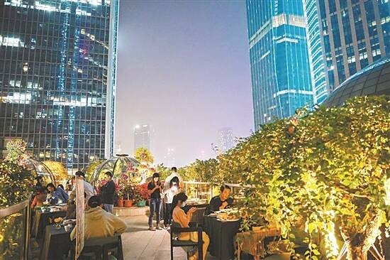 段太阳表示,除了空中花园餐厅雅居乐中心店以外,珠江新城其他门店在保持统一的主风格上,每个门店都各具特色,如建滔店则是在餐厅门口设置了6米高的LED巨幕屏,用科技模拟动感瀑布、静态湖南山水的画面,营造出湖南特色印记。
