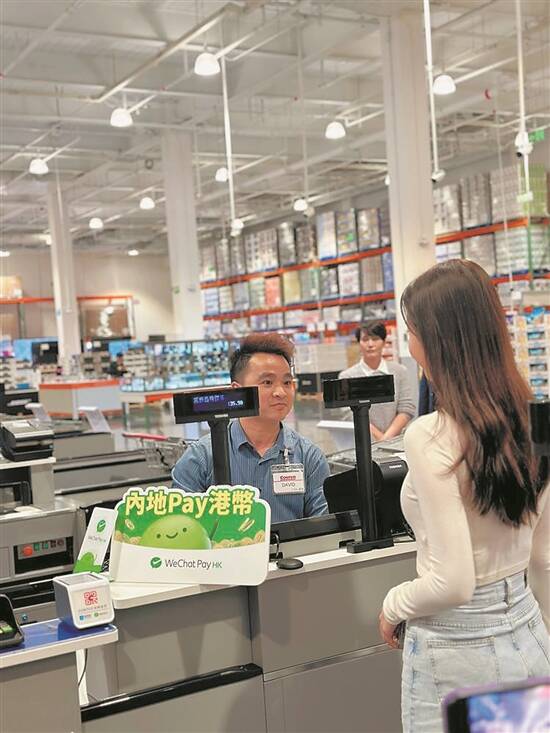 香港反向代购,顾名思义,就是从深圳买东西送到香港。而记者在现场注意到,“内地Pay港币”的标志放在显眼处,该超市可以直接用港币购买商品,工作人员现场演示了如何使用WeChat(微信海外版)以港币进行结账。记者梳理发现,从香港西九龙站搭乘高铁抵达深圳北站最快仅需要18分钟,从深圳北站乘车抵达该会员店仅需要约10分钟。