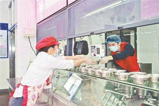 腾班学生给食堂阿姨送汤