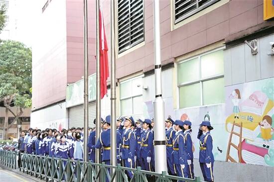 羊城晚报讯 记者陈一典报道:日前,一场特别的升旗仪式在澳门工联职业技术中学举行。珠海市理工职业技术学校(以下简称“珠海理工”)14名身着礼兵服、气宇轩昂的国旗护卫队队员,迈着铿锵有力的步伐,护送国旗走向升旗台。随着鲜艳的五星红旗缓缓升起,两校师生代表齐唱国歌,两校携手共进的决心和共同迎接新时代的信心,融进了歌声中。