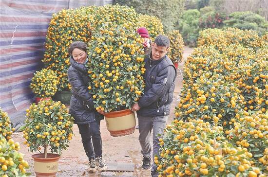 档主帮忙将市民选购的年橘搬上车
