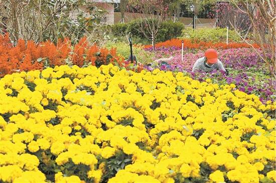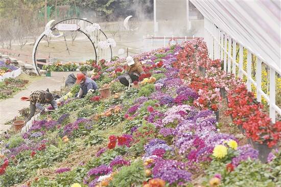 东城香遇百花园园林工人正忙着补种花草迎接春节游客的到来