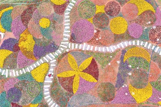 鸟瞰香遇百花园花丛,犹如万花筒