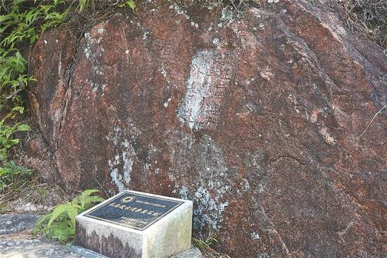 长南迳古道摩崖石刻,上刻“雍正三年孟秋榖旦佘非凡重修长南迳”十六字
