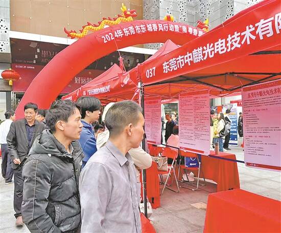 为了解决企业的用工需求,今年春季,东莞市镇两级人社部门计划开展春风行动暨“南粤春暖”供需对接活动260多场,其中市内招聘114场、赴外招聘49场、直播带岗17场、线上专题招聘82场,组织4800多家优质用工企业,提供岗位7万多个,时间将持续至3月。