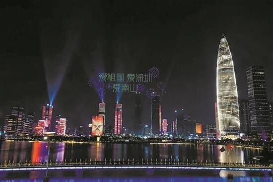 科技是南山区的一大特色,2024年春节,南山将科技感与传统文化完美结合,在后海和前海两处区域上演龙年新春主题的新版灯光表演。其中后海灯光表演主题为《龙悦新春》,以IP小龙娃(钱多多)为主线,将现代音乐与传统祥瑞图腾融合,传递祥和欢乐的城市温度。前海合作区灯光表演主题则为《春禧》,以“中国红”为背景,以“祥云”“辰龙”“花开富贵”“五福临门”等温馨祝福为核心内容,将大江南北各地春节民俗中的喜庆元素,结合现代民乐的动感节奏和旋律,共祝市民和游客朋友们事业蒸蒸日上、生活美满幸福。
