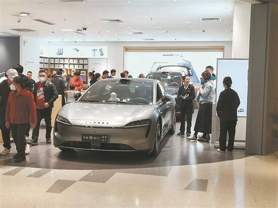 华为门店内,工作人员向消费者介绍车型