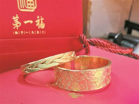 对应的制作周期亦有所不同。广州市工艺美术大师、第一福打金制作技艺非遗传承人周镜钊向记者介绍说,“简单款式1小时左右,复杂款式则要3-4个小时,镶嵌款式技艺要求更高,需几天后再取。店内加工则是按件收费,比如足金女款戒指收费是60元起,男款70元起;足金女款手镯和戒指均为180元起。”