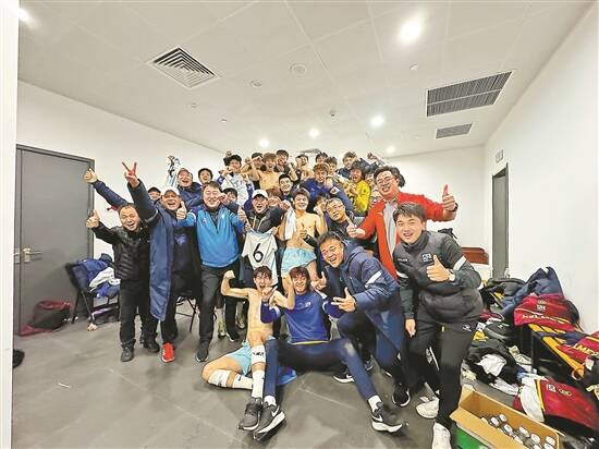 深圳U19队夺冠后在更衣室合影庆祝 图/广东省足协
