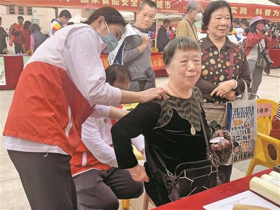 除了精彩的舞台表演外,多家单位联合在活动现场开办“文明集市”。集市现场共有26个服务摊位,服务内容丰富。除了《江门市文明行为促进条例》宣传、安全知识宣传、应急救护知识普及、科普知识、消防法和消防安全知识、健康知识宣传外,还有义诊、义剪、义修小家电、传统中医理疗等惠民项目。不但如此,现场展示出的应急救援设备,也让不少市民开了眼界。