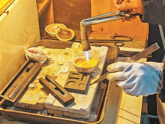 第一福珠宝师傅熔金过程