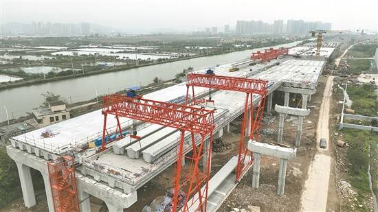 工人们施工有条不紊,项目场地机器轰鸣……日前,香海大桥西延线先行段项目建设现场掀起建设热潮,奏响新春建设“交响曲”。笔者现场看到,现浇梁施工、预制梁制造等工序正如火如荼,200多名建设者和工程项目管理人员正在奋力推进项目建设。