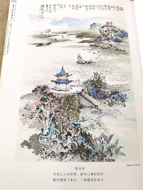 曾存在梌山内却毁于抗日战争期间的野吏亭,经由黄老回忆和其精湛的笔下功夫绘出