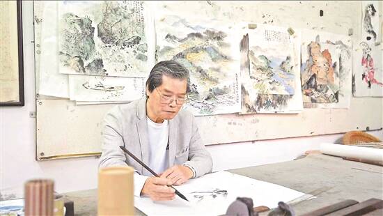黄澄钦老师在画室作画