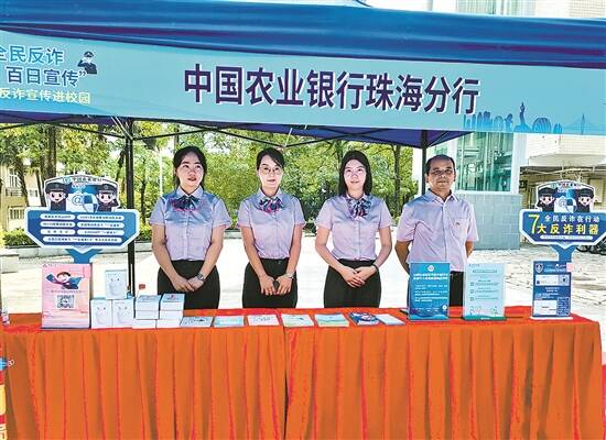 2023年,农行珠海分行承办“全民反诈 百日宣传”之反诈宣传进校园活动,结合“开学季”校园反诈特点,围绕兼职刷单、网购退款、学费收缴、网络游戏、买卖租借账户等典型校园诈骗类型进行宣传讲解,并重点对《反电信网络诈骗法》中出租、出借、买卖银行账户可能受到的惩戒措施进行普法宣传。