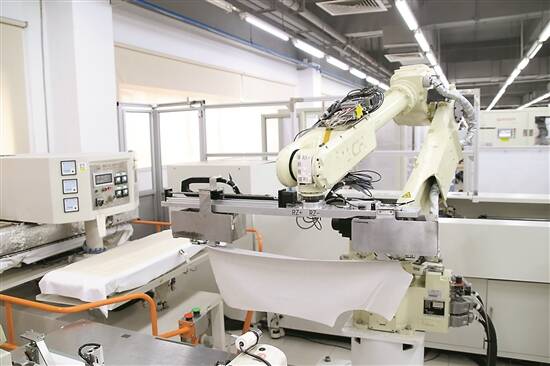 绿色发展既是中国纺织大国的必由之路,也是产业发展必须遵循的发展方向。走进深耕纺织服装行业40多年的广东溢达纺织有限公司(以下简称“溢达”),有别于传统的纺织车间生产情景,生产线上机械手舞动,被裁剪出的布料进行拼接、缝合等多道工序,有序传递到后续生产设备,三三两两的工人通过操作各种自动化设备,有序开展生产。