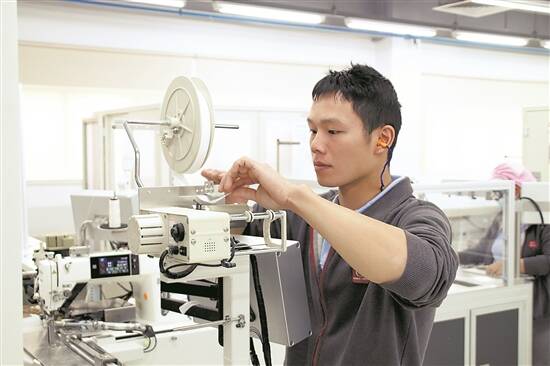 广东溢达纺织有限公司生产车间,工人正在操作设备