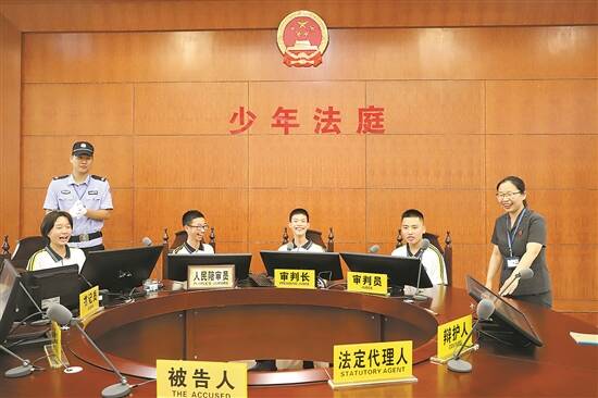 在法院干警的带领下,学生们还走进少年审判庭、司法警察大队,体验了一把当法官、法警的感觉。“这是一次难得的校外课堂,我会当一名遵纪守法的好学生、好公民。”此次开放日活动顺利结束,给学生们留下了深刻印象。