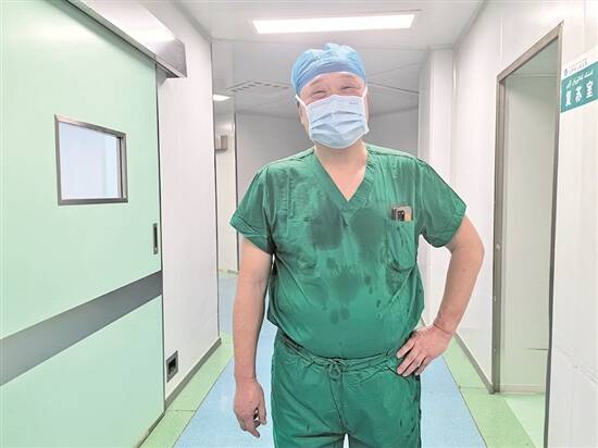 3月28日,为当地患者做完手术的王钢手术衣已经湿透了 罗毅文 摄