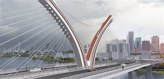 据了解,项目起点接现望沙路,往东跨越洪屋涡水道,终点至小康路,全长约0.9公里。该项目双向6车道,最高通行时速为六十公里,兼具一级公路和城市主干道功能,其中拟新建桥梁450米、主桥段约270米、引桥段约180米。主桥索塔由两个外张的异形曲线塔组成,索塔弧度极具张力,造型取义于“蝶变新生”。