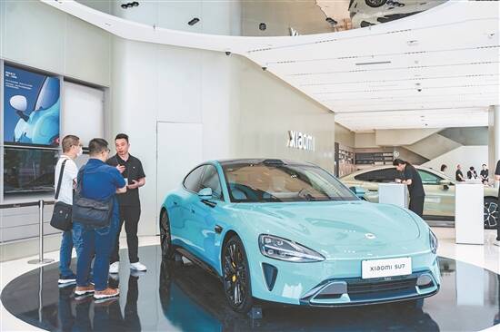广东作为小米汽车的首发重镇,将有11家门店陆续开业。在位于广州市越秀区的小米之家星寰国际汽车旗舰店,记者看到现场停放着多款颜色的小米SU7,每款车旁都围满了想要抢先体验的车友们。他们中既有小米的忠实粉丝,也有对新能源汽车市场保持高度关注的车主。不少人在试驾后都对SU7的性能、外观及价格表示赞赏,认为其性价比较高,符合年轻人的消费观念。